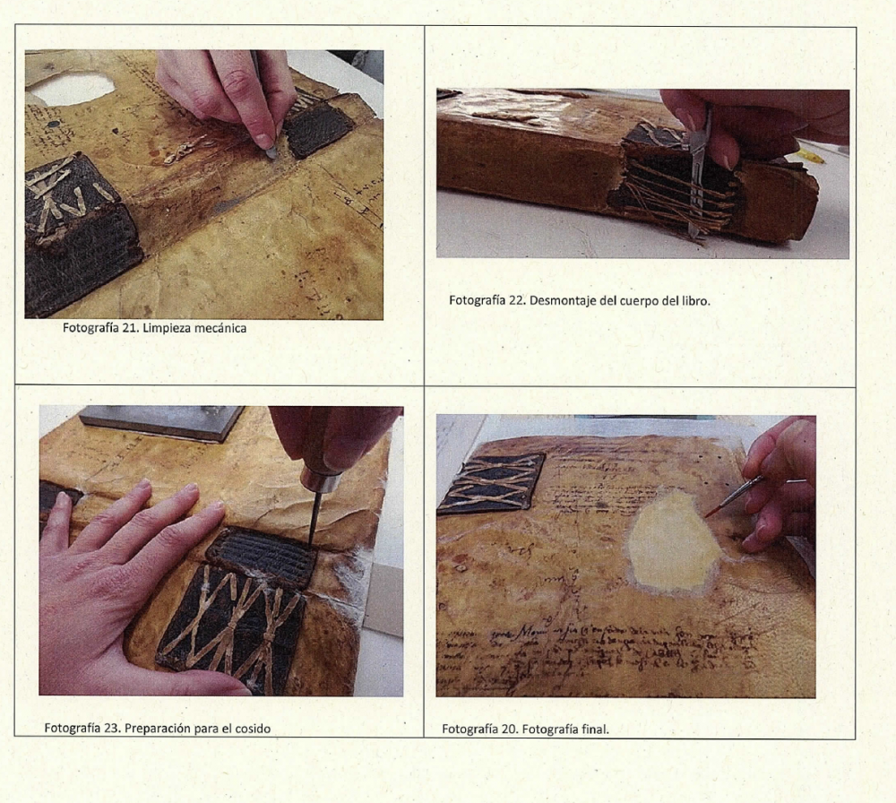 Gemma Contreras ha assenyalat que els danys més acusats eren l'oxidació del paper per les tintes d'origen ferrogàlic i les taques d'humitat. D'altra banda, hi havia quadernets descosits i la pell de les cobertes es trobava molt deshidratada, a banda de presentar esquinçaments i que manca en el paper. “Els fulls no es podien separar, per la qual cosa ha sigut una tasca de foli a foli, després de llevar el cosit original, que hem guardat”, explica. A causa de la fragilitat del suport, es va optar per realitzar una neteja controlada en taula de succió amb una solució hidro-alcohòlica i les fulles van ser laminades amb paper japonés washi de baix gramatge i com a adhesiu es va utilitzar gelatina animal, de manera que es garantisca la seua flexibilitat, durabilitat i llegibilitat. També s'ha aplicat un tractament de desacidificació amb la finalitat d'aportar una reserva alcalina.