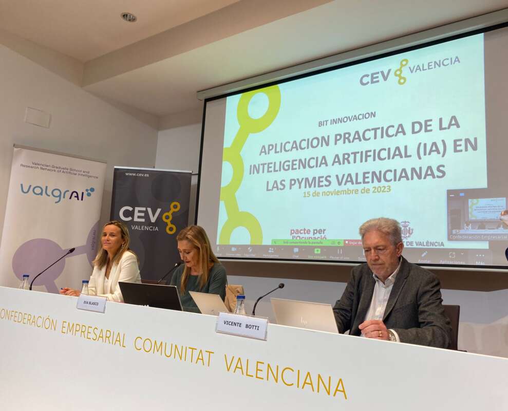 La consolidación e implementación de la Inteligencia Artificial en los procesos productivos ya son posibles, y con ellas a las pymes valencianas se les presenta una gran oportunidad para innovar y crecer. Y precisamente con el objetivo de ayudar a las pymes a aprovechar esta oportunidad, CEV Valencia ha organizado hoy, en colaboración con ValgrAI, el Bit de innovación “Aplicación práctica de la Inteligencia Artificial (IA) en las Pymes valencianas”.