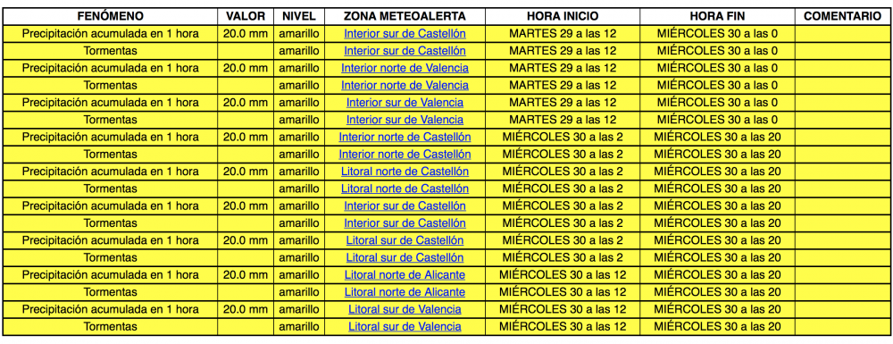 Se esperan hasta 20 milímetros de precipitación acumulada por hora en varios puntos de Castellón y tormentas