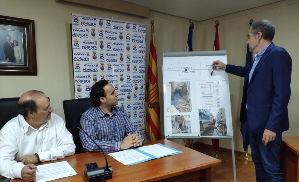 El alcalde de Moncofa, Wences Alós, junto con el Primer Teniente de Alcalde, José María Andrés, y el concejal de urbanismo han presentado un plan de inversión trianual de obras de alcantarillado por importe de 1,2 millones de euros.