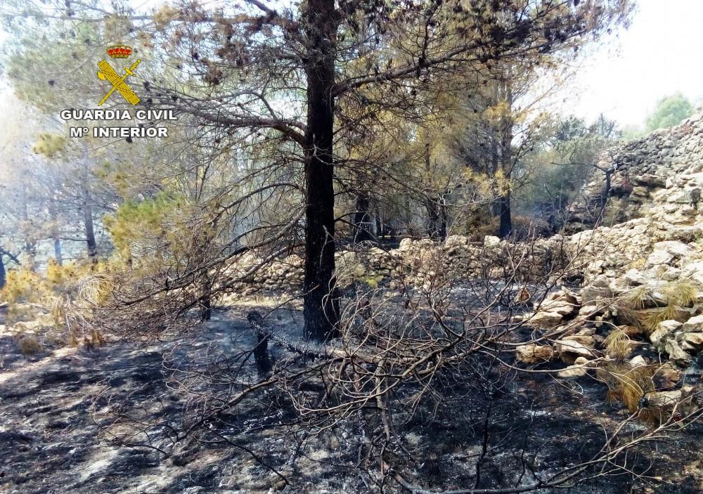La Guardia Civil ha investigado a un varón, como supuesto autor de un delito de incendio forestal. La actuación se inició cuando la Guardia Civil tuvo conocimiento que había un incendio en una parcela de la localidad de Xert y que se encontraba descontrolado.