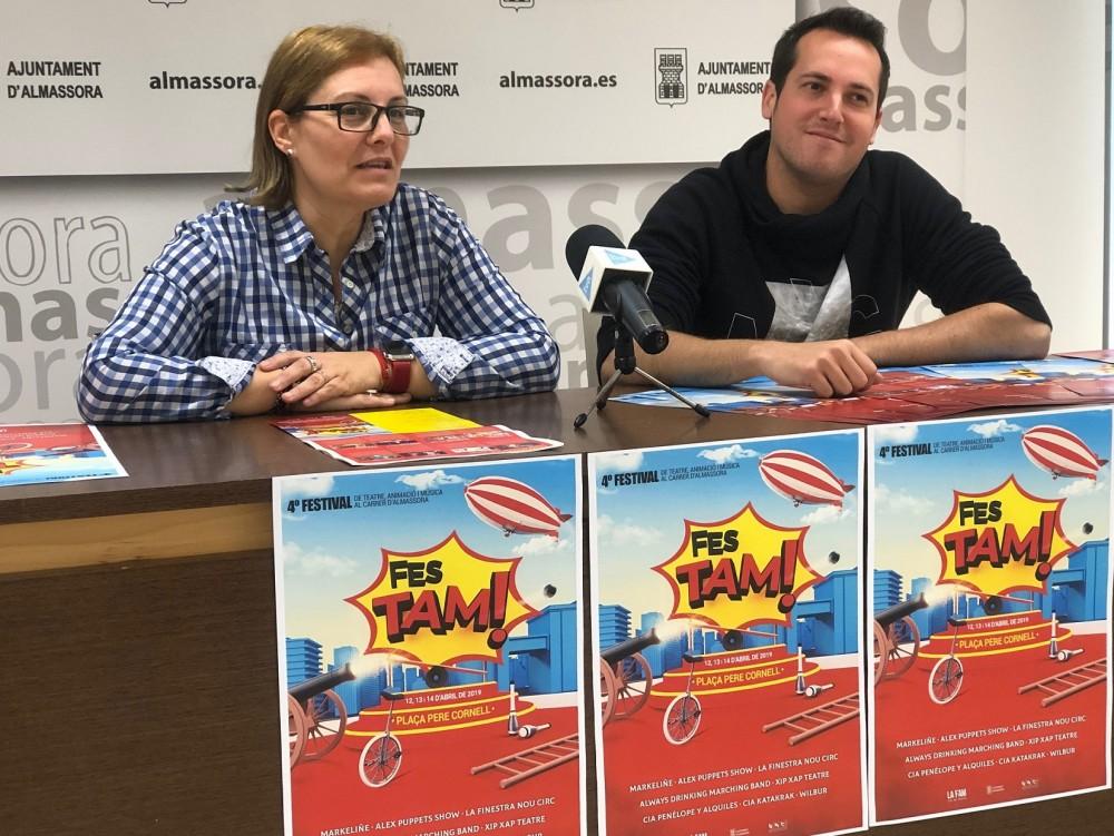 La regidora de Cultura, Isladis Falcó, ha presentat aquest matí l'IV Festival de Teatre, Animació i Música al Carrer (FES TAM!) al costat del coordinador del certamen, Sergio Heredia, per a desgranar un programa compost per una desena d'espectacles a càrrec de huit companyies. Majors i xicotets estan convocats a gaudir de l'esdeveniment des del divendres fins al diumenge a la vesprada.