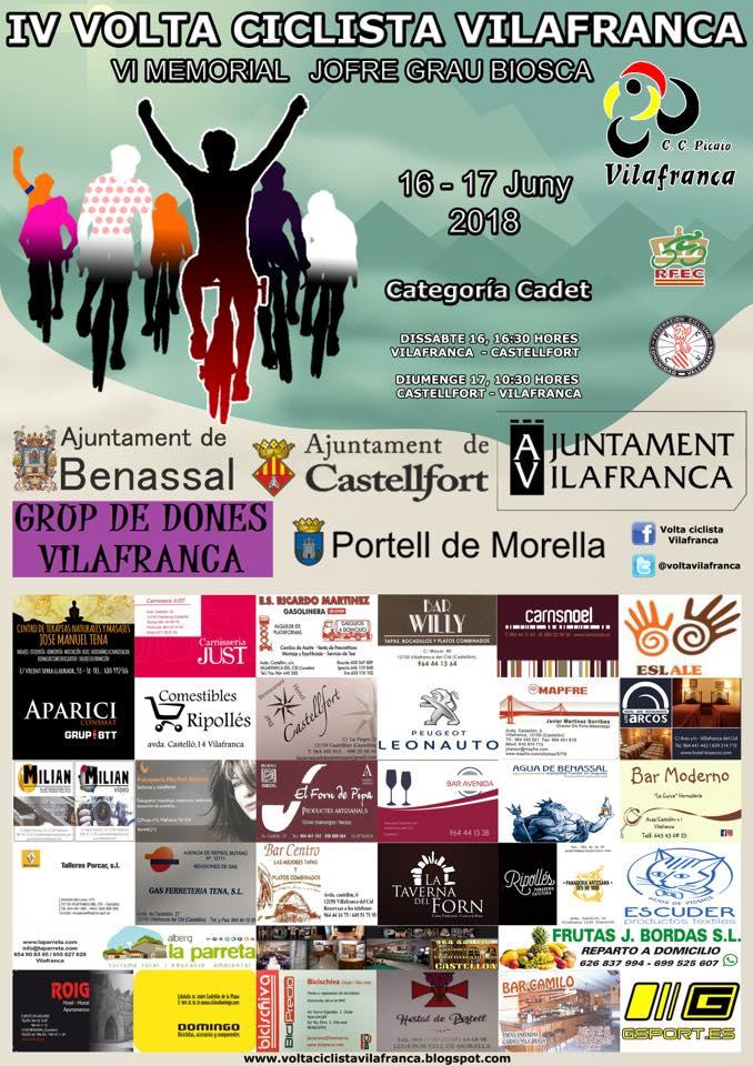 Aquest cap de setmana se celebra la IV Volta Ciclista a Vilafranca, VI Memorial Jofre Grau Biosca, competició de categoria cadet organitzada pel Club Ciclista Picaio que comptarà amb un centenar de participants.