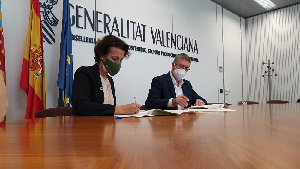 El conseller de Economía Sostenible, Sectores Productivos, Comercio y Trabajo, Rafael Climent, como presidente del Instituto Valenciano de Competitividad Empresarial (Ivace) y la directora de Iberdrola i-DE en la Comunitat Valenciana, Ana Lafuente, han firmado un acuerdo para fomentar la integración de las Comunidades Energéticas Locales (CEL) en la red de distribución eléctrica de la Comunitat Valenciana.