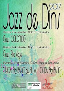 L'Ajuntament d'Onda, seguint amb la producció d'esdeveniments culturals a la localitat, ha presentat el cicle 'Jazz de Dins 2017'. Lluís Pastor, tinent d'Alcalde de Promoció Cultural, ha destacat que “un any més, l'Ajuntament d'Onda vol apostar per la música en directe, als carrers i de forma gratuïta perquè els onders i visitants puguin gaudir-la. En aquest cas es realitzaran concerts de jazz durant tres caps de setmana consecutius”.