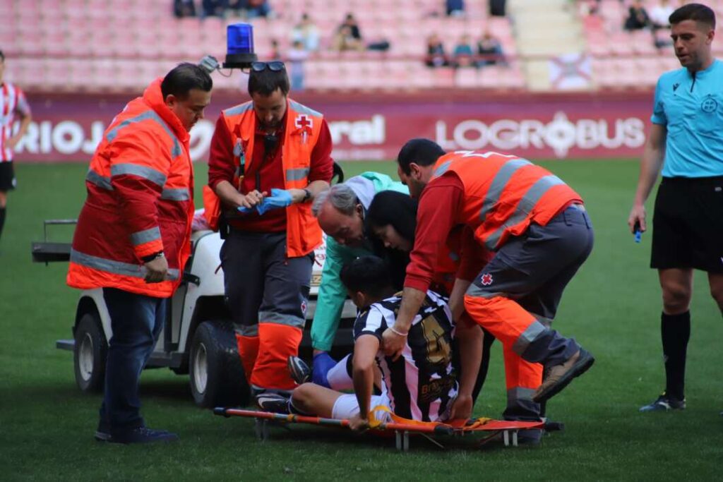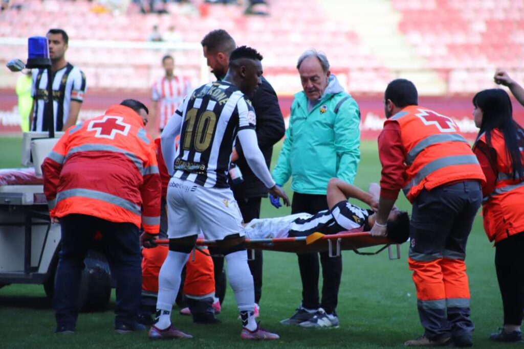 El primer tiempo estuvo marcado por la lesión del joven lateral albinegro Javi Antón. Muy mala pinta. Posiblemente tiene afectados los ligamentos de la rodilla derecha. En el minuto 16 abandonó el terreno de juego llorando y en camilla. Nada más caer al suelo el ex del Alcoyano algo raro notó porque pidió el cambio entre gestos de dolor e impotencia. Se le practicarán pruebas. Su puesto lo cubrió el neerlandés Ronald Baas.