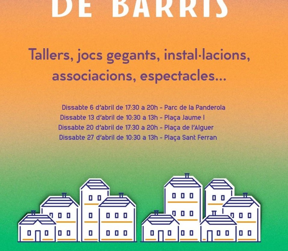Les activitats comencen aquest dissabte 6, de 17.00 a 20.00 hores, a la plaça de la Panderola, on a banda dels jocs, la companyia La finestra nou circ interpretarà 'L’engranatge' a les 19.00 hores. La segona jornada serà el 13 d'abril, en horari de matí, de 10.30 a 13.30, al jardí de Jaume I, on actuarà Javi Javichi, amb 'Veloz como el rayo'. El 20 d'abril les activitats es traslladen a la plaça del L'Alguer, de 17.00 a 20.00 hores. A les 19.00 hores serà l'actuació de la Inestable compañía de títeres, amb 'Godofredo y el caballero rojo'. L'última jornada serà el 27 d'abril, de 10.30 a 13.30 hores a la plaça de Sant Ferran. Entre les activitats, hi haurà també un espectacle, el de Palput Produccions, que representaran 'Ecodisea' a les 12.30 hores.