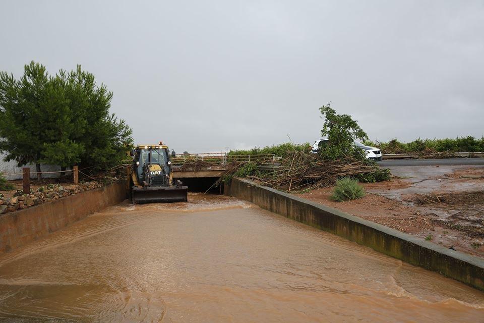 La Brigada Municipal y la maquinaria de Agricultura han actuado durante toda la noche y esta mañana en varios puntos tanto del casco urbano como del término municipal para garantizar el paso: Corral, Blanc, Maquial, Motor de Cerverola, Pla de Pinar, puente del inicio de la avenida Jaume I, alrededores del tanatorio, almacén municipal y Estadio José Mangriñán, Paratge de Sant Josep, calle Jaume Valls Canós para derribar parte de un muro para que no cediera y evitar la inundación de las viviendas de la zona…