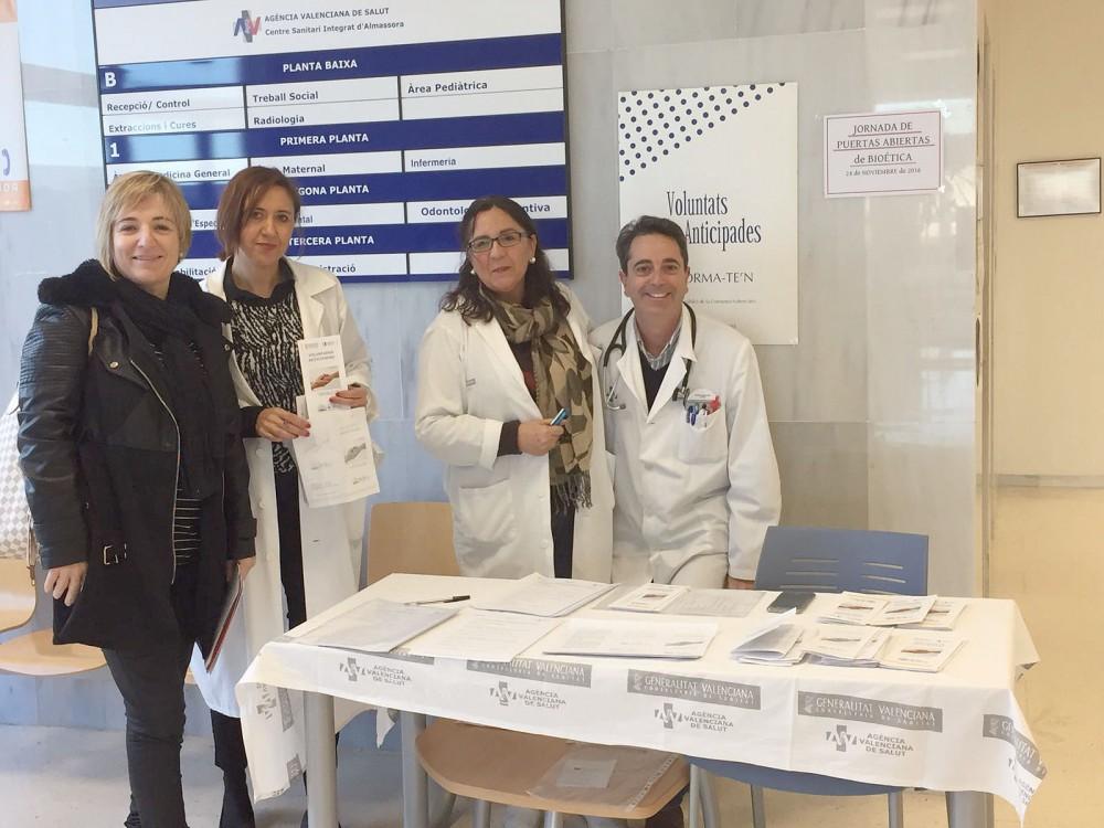 El Comité de Bioética Asistencial (CBA) del Departament de Salut de Castelló han cerrado hoy con éxito la Jornada informativa sobre Voluntades Anticipadas, que ha desarrollado en diversos centros sanitarios del Departament y en el Hospital General Universitari de Castelló, con la que se pretendía acercar a la población este documento tan importante para dejar constancia de las instrucciones de tipo sanitario que cada persona quiere que se sigan en el momento final de su vida.
