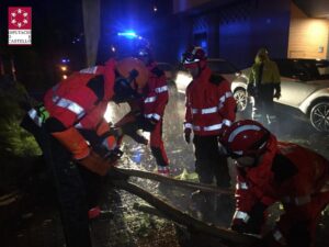 Sobre las 4.40 horas de la madrugada se procedía a la retirada de un árbol caído sobre un coche en Almassora el cual cortaba la circulación al tráfico. Una dotación de bomberos del Parque de la Plana Baixa han trabajado en la retirada del espécimen y limpieza del vial. Y además se han cortado diversos accesos a caminos y zonas inundables como medida preventiva