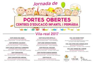 Els centres educatius d’Infantil i Primària de Vila-real preparen jornades de portes obertes per a donar-se a conèixer entre els pares, mares i xiquets. El primer a obrir les portes serà el Pius XII, el proper dimarts 25 d'abril, de 17.15 a 18.30 hores. El mateix dia, el Bisbe Pont obrirà una ronda de quatre dies, en els quals els pares podran visitar el centre de 9.00 a 13.00 i de 15.00 a 17.00 hores. El 26 d'abril seran dues escoles més les que s'òbriguen al públic: Escultor Ortells, a partir de les 17.30 hores, i el Pintor Gimeno Barón, de 15.30 a 17.00 hores. L'Angelina Abad i Carles Sarthou faran el mateix un dia després, el dijous 27 d'abril, en el primer cas de 17.00 a 19.00 hores i en el segon durant tota la jornada, de 9.00 a 17.00 hores. Els seguirà, el 28 d'abril, la Consolació, de 15.00 a 17.00 hores.