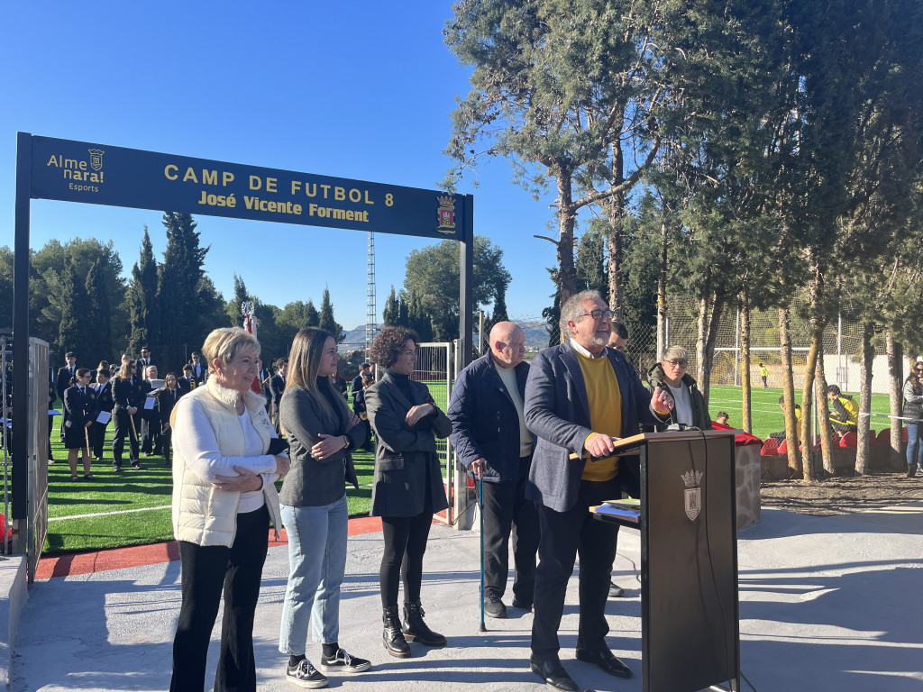 A la cita també han assistit la diputada d'Esports, Tania Baños, l'alcaldessa d'Almenara, Estíbaliz Pérez, i representants de la corporació municipal, i s'han celebrat diversos partits de futbol 8 entre jugadors de l'Escola de Futbol Municipal d'Almenara i la del València CF pertanyents a les categories de prebenjamí i benjamí. Per part seua, José Vicente Forment, ha sigut l'encarregat de descobrir la placa amb el nom del camp de futbol, i també s'ha comptat amb la presència del jugador del València CF, l'almenarenc Jaume Doménech, i la jugadora de futbol, l'almenarenca Marta Mateos.