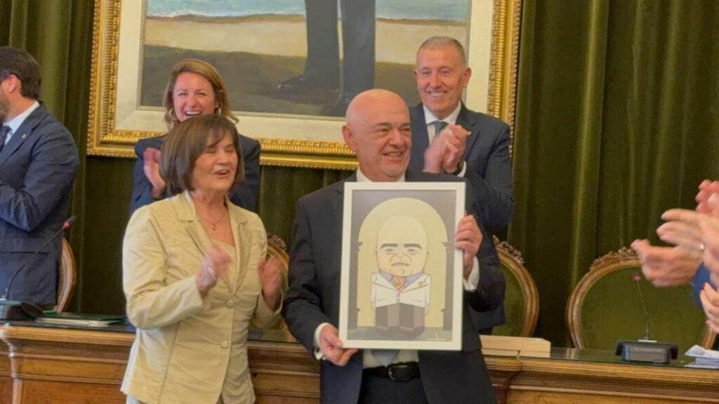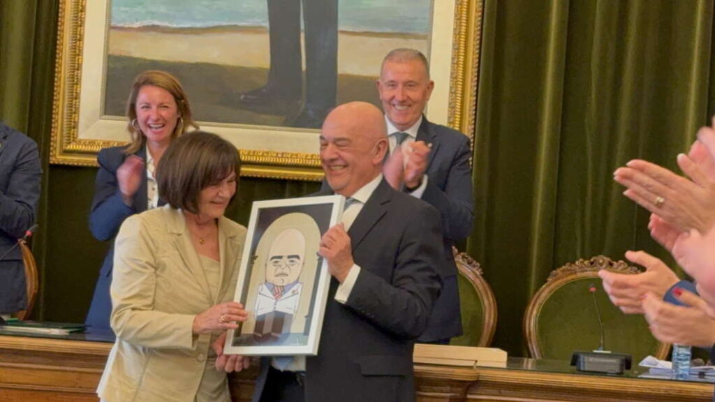 Tras las palabras, la entrega de una placa con el escudo del Ayuntamiento, y, además, un regalo muy especial, una caricatura de Xipell.