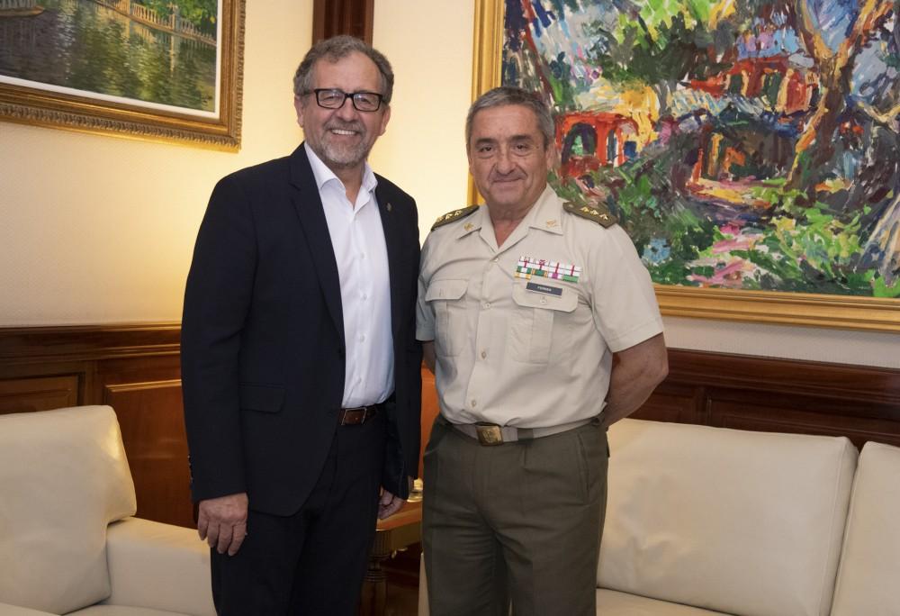 El presidente de la Diputación, Josep Martí, ha recibido esta mañana en el palacio de las Aulas al subdelegado de Defensa en Castellón, Javier Ferrer. Se ha tratado de una primera toma de contacto muy cordial en la que ambos han acordado realizar encuentros periódicos y seguir manteniendo la línea de colaboración existente entre ambas instituciones.