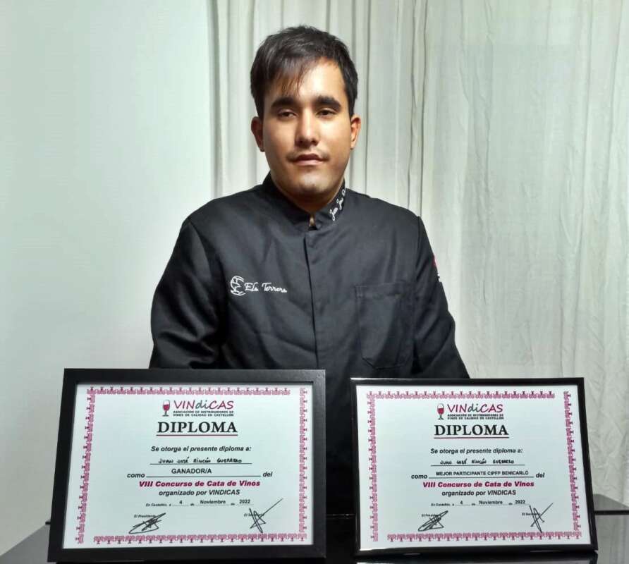 El estudiante del CIPFP Benicarló Juan Jose Rincón Guerrero se ha proclamado vencedor del VIII Concurso de Cata de Vinos, entre escuelas de hostelería organizado por la Asociación de Vinos de Calidad en Castellón (Vindicas).