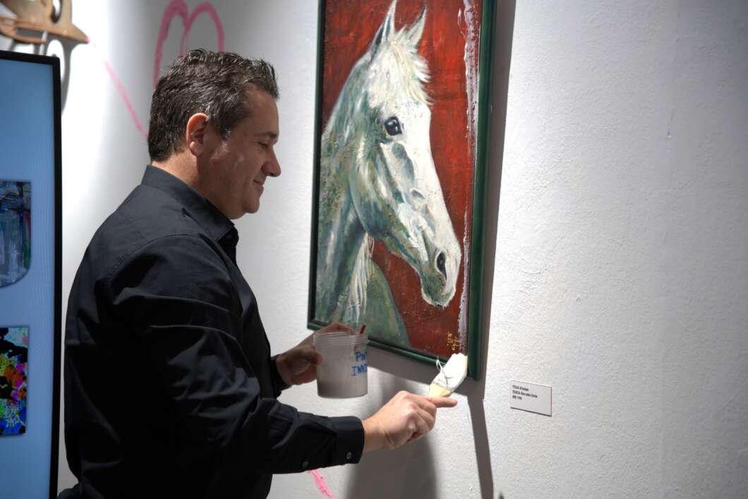 L'acte, celebrat anit a la sala, va ser el moment triat pel prolífic artista per a protagonitzar una performance que consistia a esguitar amb pintura totes les obres que han participat en la mostra.
