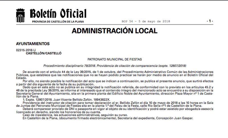 BOP Juanvi Bellido 050518La citación para la instrucción de su expediente, cuyo juez es el gerente del patronato de Fiestas, recusado por él, tampoco tiene desperdicio…