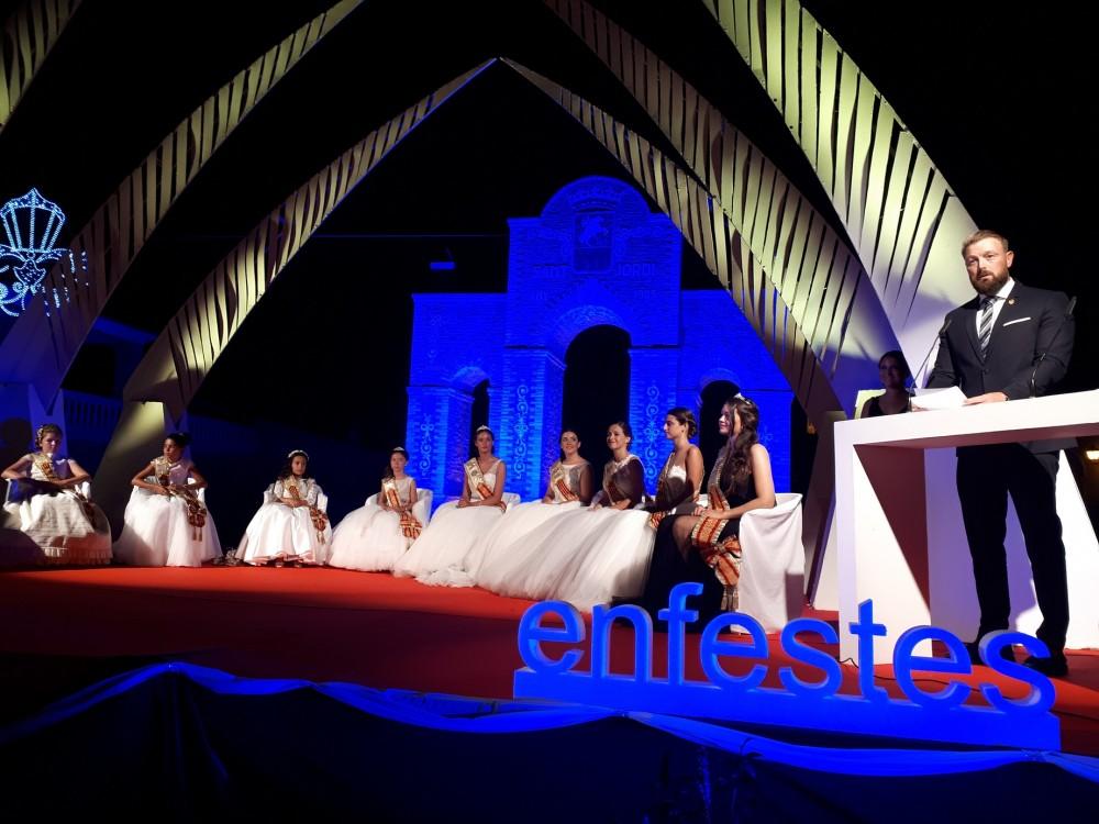 Tancant l'acte, l'alcalde de Sant Jordi, Iván Sánchez, va inaugurar oficialment les Festes Majors, que es desenvoluparan fins al pròxim 6 d'agost, i en el seu discurs va enaltir els valors que adornen a les Reines i les seues Corts i, va comparar Sant Jordi amb una perfecta composició musical, amb un harmoniós i virtuós conjunt coral personificat en els veïns del municipi, alhora que va tenir paraules d'agraïment per a tots aquells que fan possibles les festes i per a l'artista José Luis Ferr del que va destacar la seua qualitat professional i humana.