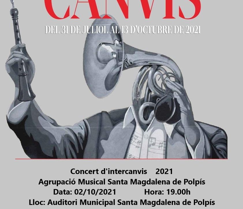 El sábado, 2 de octubre, a las 19h y en el Auditorio Municipal de Santa Magdalena, la Agrupación Musical realizará un concierto, dentro de la campaña de Intercambios Musicales creada por la Federación de Sociedades Musicales. Dicha campaña tiene por objeto la realización de un programa de conciertos por parte de agrupaciones artísticas de las siguientes federaciones: Federación de Sociedades Musicales de la Comunidad Valenciana (FSMCV), la Federación de Coros de la Comunidad Valenciana (FECOCOVA), la Federación de Folklore de la Comunidad Valenciana (FFCV), la Federación Valenciana de Dolçainers i Tabaleters (FVDiT) y la Federación de Orquestas y Rondallas de Pulso y Púa de la Comunidad Valenciana (FORPPCV).