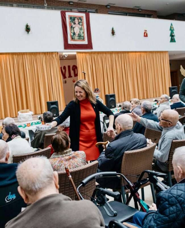 Día de fiesta en el Asilo Hogar Virgen de Lidón de Castellón, para recibir a la alcaldesa y sus concejales, en la tradicional visita de celebración del nuevo año.
