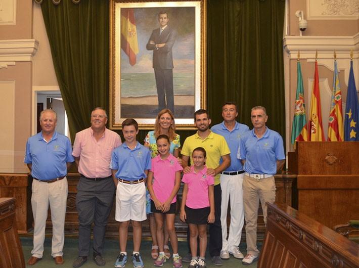 La alcaldesa de Castellón, Amparo Marco, ha felicitado al Club de Golf Costa Azahar por los éxitos deportivos de los jóvenes de su escuela de golf y por su actividad sociocultural. Marco ha recibido en el Ayuntamiento a los campeones de España en categoría alevín y benjamín Josele Ballester, Julia Ballester y Rocío Tejedo -Minoo Mousavi no pudo asistir al no estar en Castellón- en una recepción en la que también participó el concejal de Deportes, Enric Porcar.