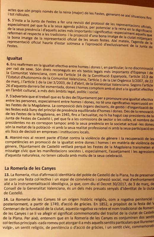En su carta, la alcaldesa hace referencia a los estatutos del Patronato Municipal de Fiestas:  “que la reina será nombrada por la alcaldía” (artículo 82) y que “el procedimiento de designación de la reina y damas de la ciudad se realizará según las normas establecidas por el Consejo Rector”.