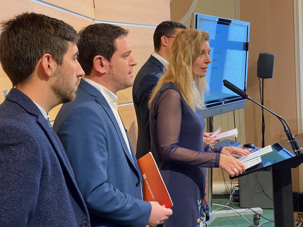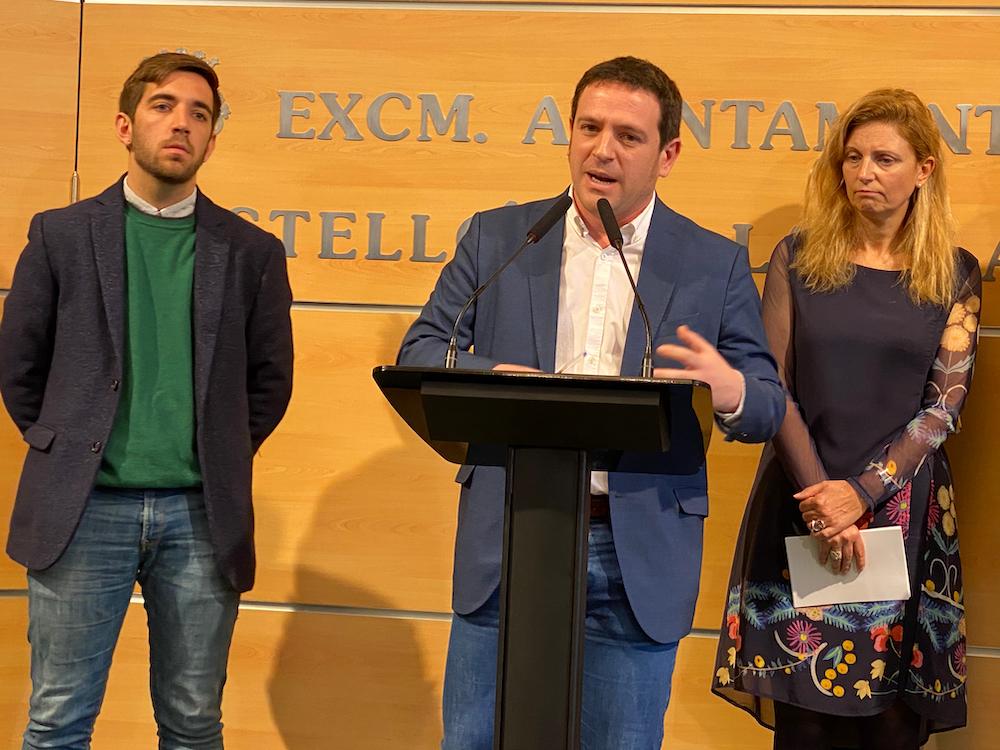 La alcaldesa de Castellón, Amparo Marco, acompañada por miembros de equipo de Gobierno: David Donate, concejal de Hacienda; Ignasi García, portavoz de Compromís, y Fernando Navarro, portavoz de Podem, han presentado algunas de las pinceladas de los presupuestos de 2020, que todavía no tienen fecha de aprobación inicial.