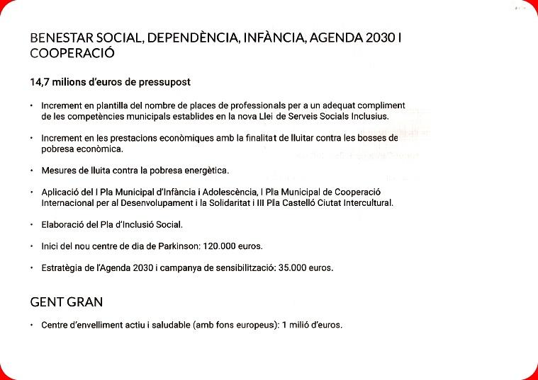 Bienestar social, dependencia, infancia, Agenda 2030 y Cooperación, y Ocupación: