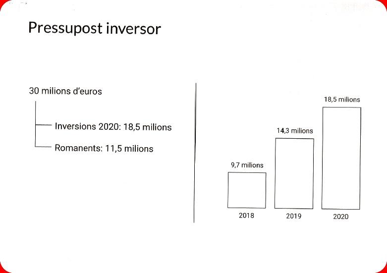 El presupuesto, en sus versiones de ingresos y gastos ascenderá a casi 187 millones de euros, el mayor de la historia de la ciudad. La alcaldesa lo ha definido como Expansivo, social e inversor y ha anunciado inversiones por valor de 30 millones de euros. Parte de los fondos inversores procederían de las cuentas municipales y fondos europeos, y los 11,5 millones restantes de remanentes del presupuesto de 2019.