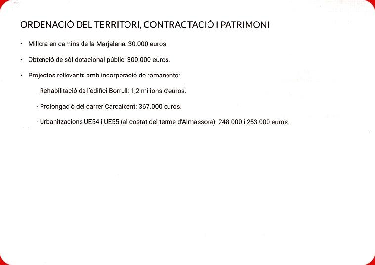 Además, Marín-Buck ha indicado que "con lo que estas cuentas destinan a la reforma del edificio de los antiguos juzgados y, sabiendo que esta reforma que asciende ya a 16,8 millones de euros que va a sufragar el Ayuntamiento en solitario, Borrull, como ya hemos dicho, no será una realidad esta legislatura".