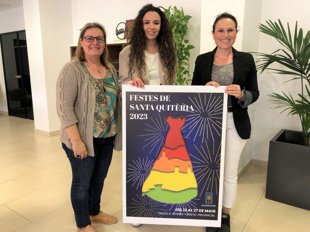 La almassorina Mar Rubio Segovia, estudiante de Interiorismo, ha ganado el concurso del cartel de fiestas de Santa Quitèria. El jurado formado por Ramón Manrique, Pepe Mingol y Pepe Claramonte elige la obra ‘Santa Quitèria és llum i color’ para ilustrar la portada del programa de las celebraciones de mayo. Otras ocho obras han competido por el premio en esta edición.