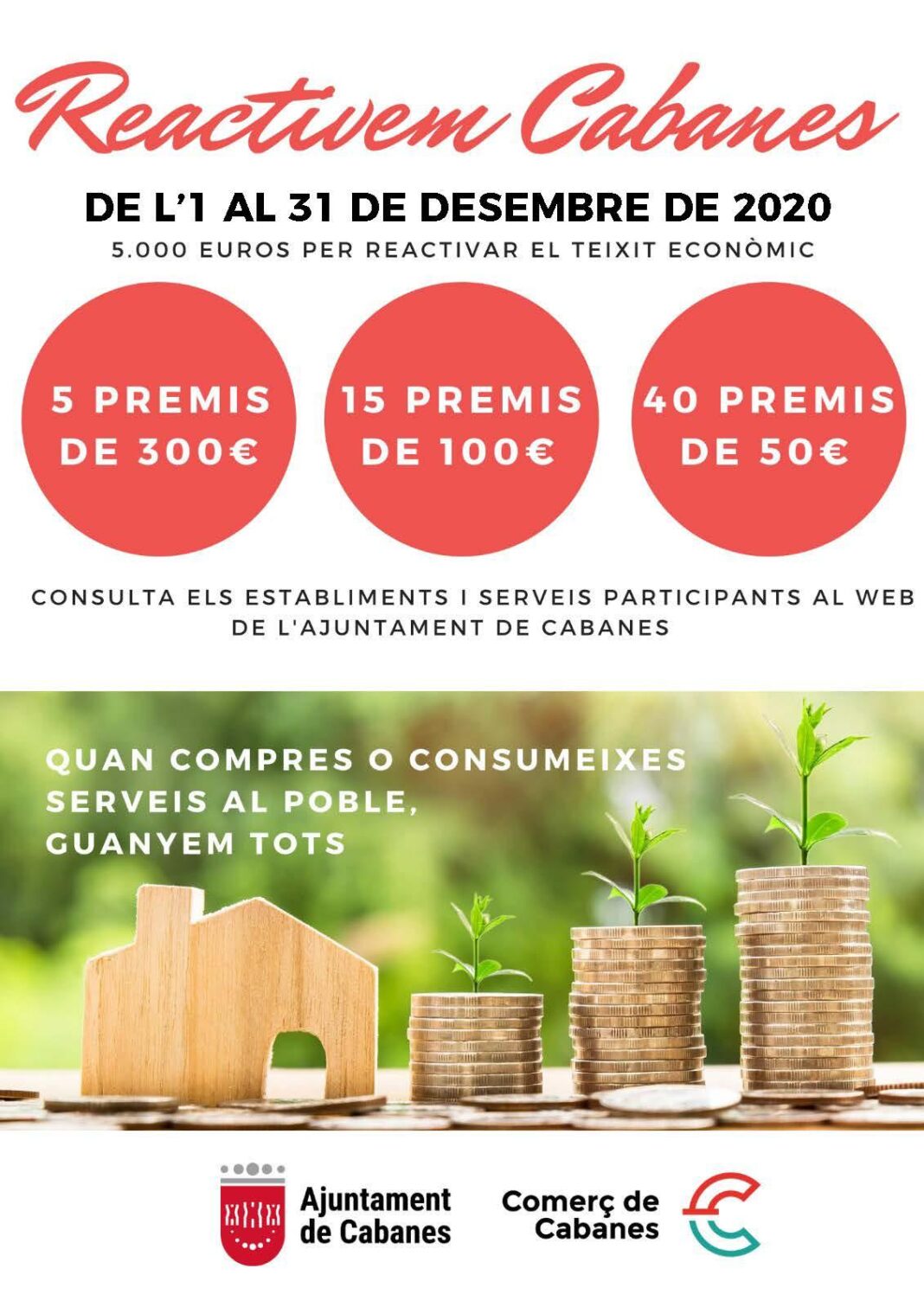 width=L'Ajuntament de Cabanes ha posat en marxa la segona campanya de foment del comerç local 'Reactivem Cabanes' en aquesta ocasió amb motiu de les celebracions de Nadal. D'aquesta manera, des de hui fins al 31 de desembre comprar en els comerços i serveis de Cabanes i La Ribera donarà opció a participar en el sorteig d'un total de 5000 euros en premis.