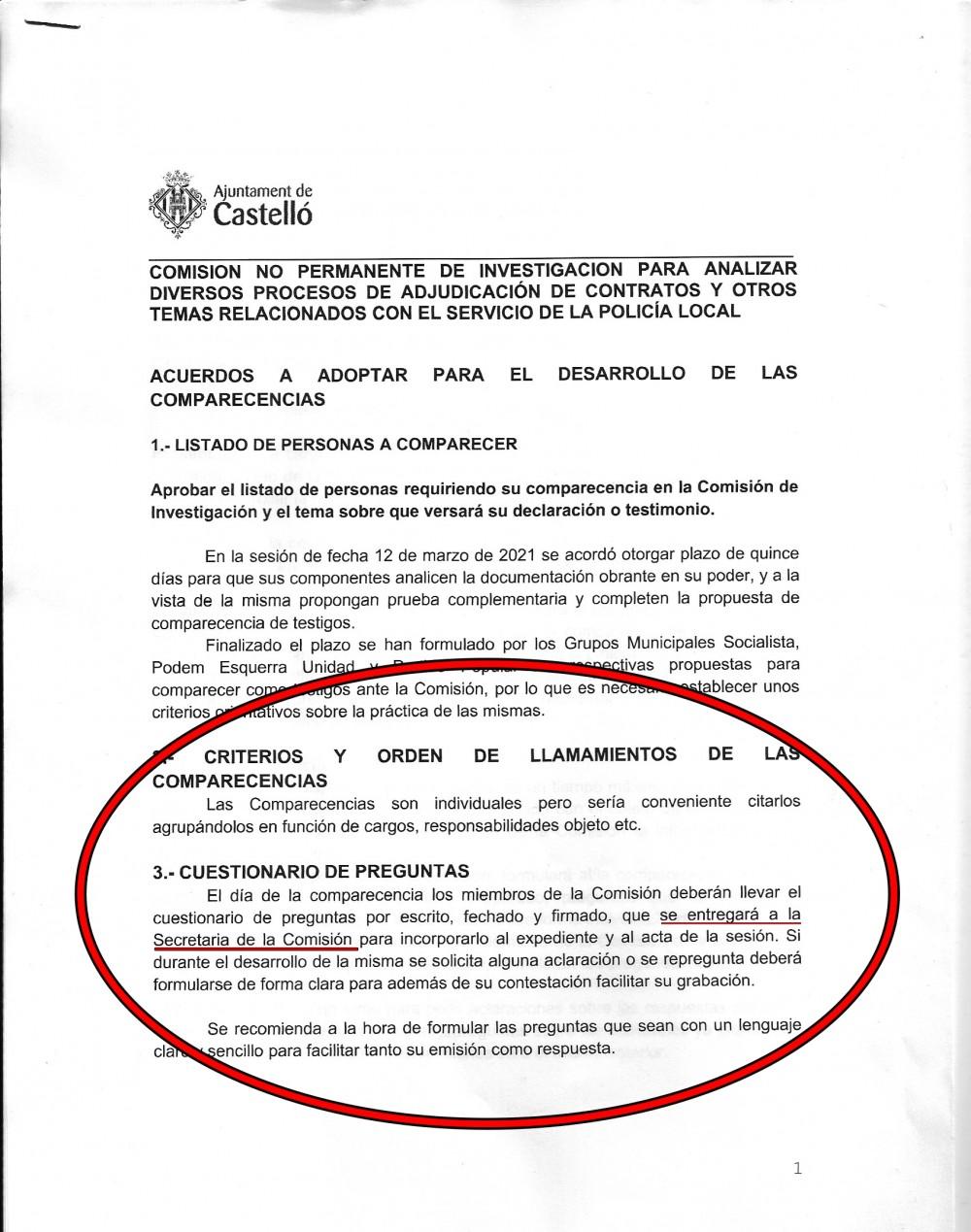 Última testifical en la Comisión de Investigación municipal que ha analizado durante dos años si se pudieron producir irregularidades en la contratación de la Sala de Seguridad de la Policía Local de Castelló.