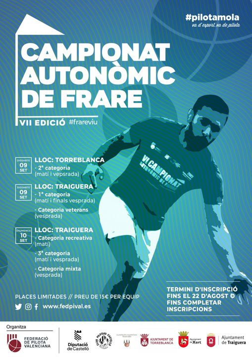 El VII Campeonato Autonómico de Frare se disputará en los municipios de Traiguera y Torreblanca los días 9 y 10 de septiembre y el Espai Cultural Obert Les Aules de la Diputación Provincial de Castellón ha acogido la presentación del evento.