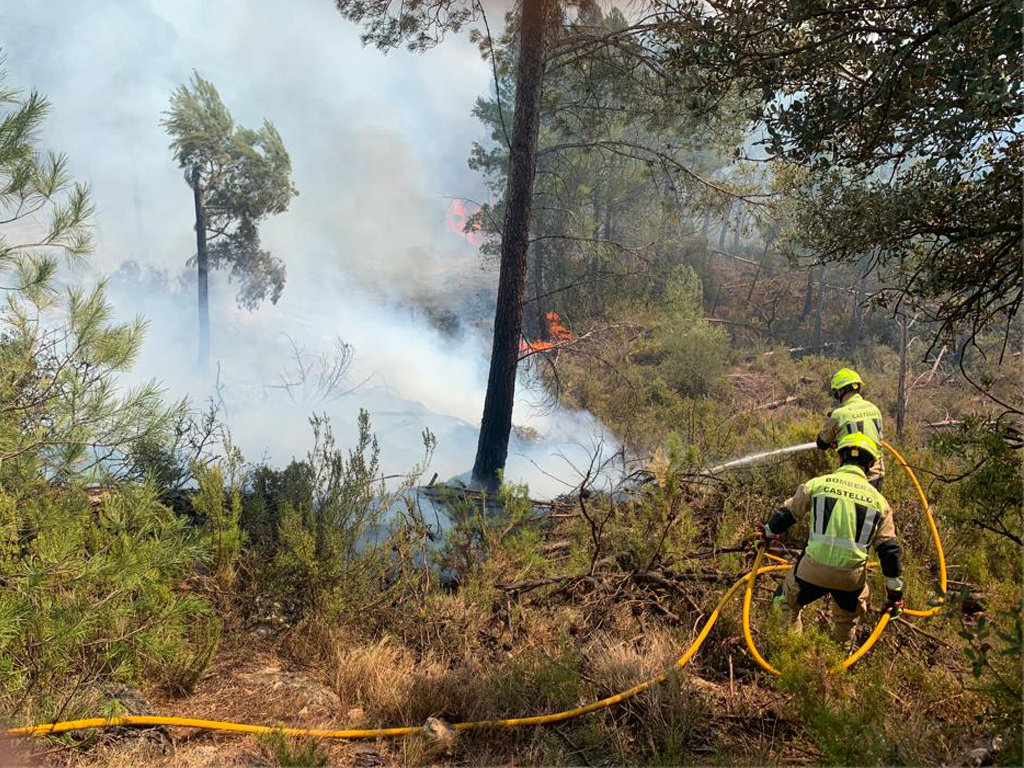 En el norte de la provincia de Castellón, en la zona limítrofe con la provincia de Teruel, el incendio tiene una evolución positiva. También ha añadido que un punto delicado es el que estaba localizado en el embalse de Arenós, "un lugar inaccesible por eso hemos desarrollado un trabajo intenso con los medios aéreos".