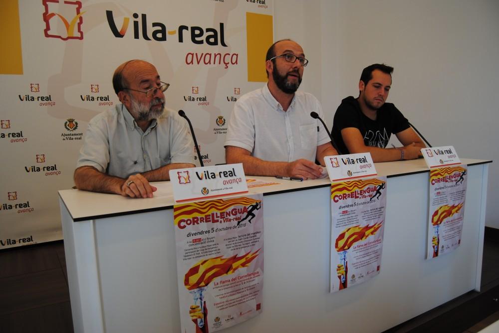 El regidor Santi Cortells, acompanyat pel representant d’ACPV, Toni Royo, i el director de La Fam, Sergi Heredia, han donat a conèixer els detalls d'aquesta nova edició del Correllengua, que recorrerà la ciutat del 3 al 5 d'octubre per a “posar de manifest el compromís de Vila-real amb la identitat, la cultura i la llengua valencianes i la seua plena normalització en la nostra societat”, indica Cortells.