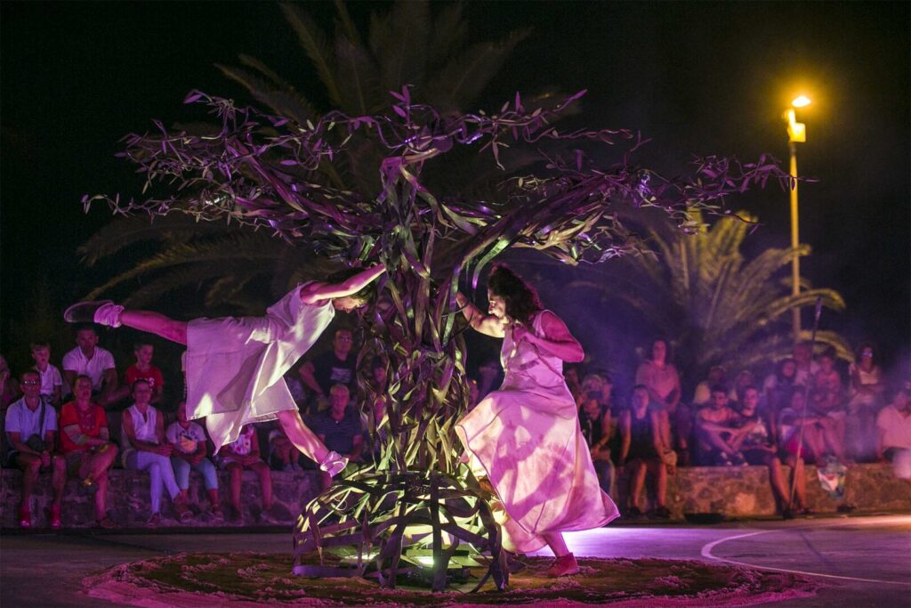 El olivo es el árbol siempre presente en todas las culturas mediterráneas antiguas y actuales, como símbolo de Resistencia, Fortaleza y Paz. Música, danza, fuego, poesía y escultura en juego, dan como resultado una pieza vibrante, intensa y comprometida que navega por las culturas mediterráneas y su evolución hasta un presente y futuro incierto, todo ello se entrelaza en una pieza breve, compacta y emocionante….