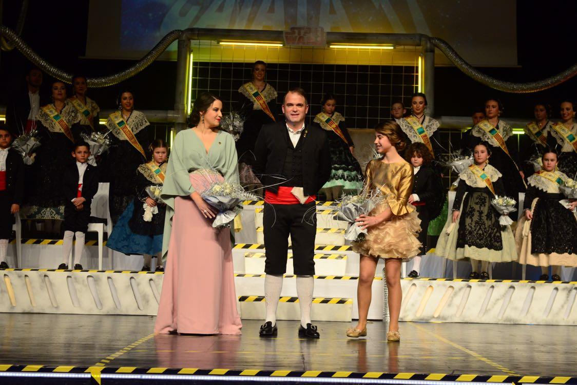 Esta noche el Palau de la Festa de Castellón se ha rendido a la evidencia de la Fuerza de las Galaxias, en la gala de la Gaiata 17, 'Tir de Colom', en la presentación de sus madrinas: Carmen Molina y Sofía Gallego, acompañadas por el presidente infantil Hugo Gómez y el presidente de la Gaiata, Javier Gimeno.
