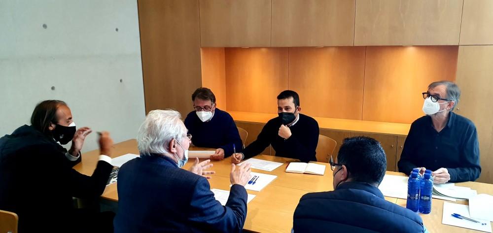 El conseller de Educación, Cultura y Deporte, Vicent Marzà, junto al director general de Deporte, Josep Miquel Moya, y el coordinador del IVC, Alfonso Ribes, se ha reunido con miembros de la directiva del Club Deportivo Castellón y de la comisión que está diseñando los actos de celebración del centenario del equipo de fútbol para dar apoyo desde la Generalitat a esta importante conmemoración.