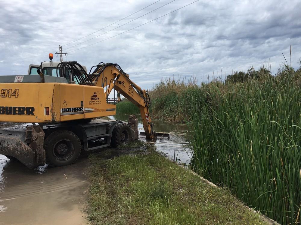 La actuación de las máquinas de la Diputación en la Gola se suma a la limpieza de la acequia general, que también se está llevando a cabo estos días, y a la de caminos que ya ha realizado el organismo provincial en el término de La Llosa.