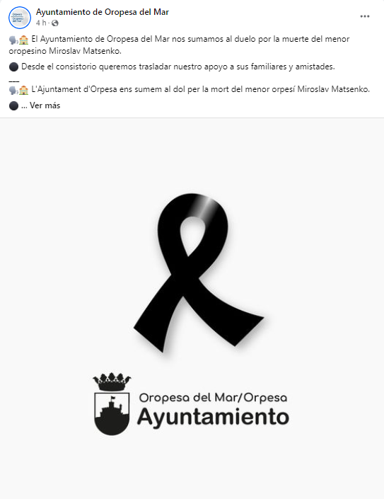 Desde el Ayuntamiento de Oropesa del Mar han trasladado su apoyo a sus familiares y amistades a través de un mensaje en sus redes sociales, sumándose al duelo por el orpesino Miroslav Matsenko.