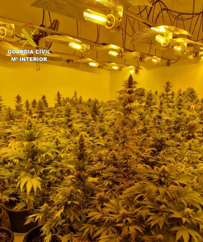 Fruto de las pesquisas y las labores de investigación los guardias civiles obtuvieron una serie de indicios que los orientaron hasta otra nave industrial de la población donde existía una plantación de marihuana con más de 800 plantas que tenían una altura que superaba el metro y medio, además del material con que el mantenían el laboratorio.