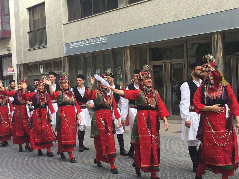 Y entonces comenzaron las actuaciones en el centro de Castellón. Actuaron en primer Lugar, los integrantes de la Colla de Dolçainers i Tabaleters de Castellón; y, a partir de aquí los representantes de Cataluñaa, Castella i Lledó, Grecia, Grup de Danses El Forcat, Islas Baleares, Italia y Chile.