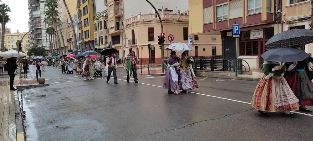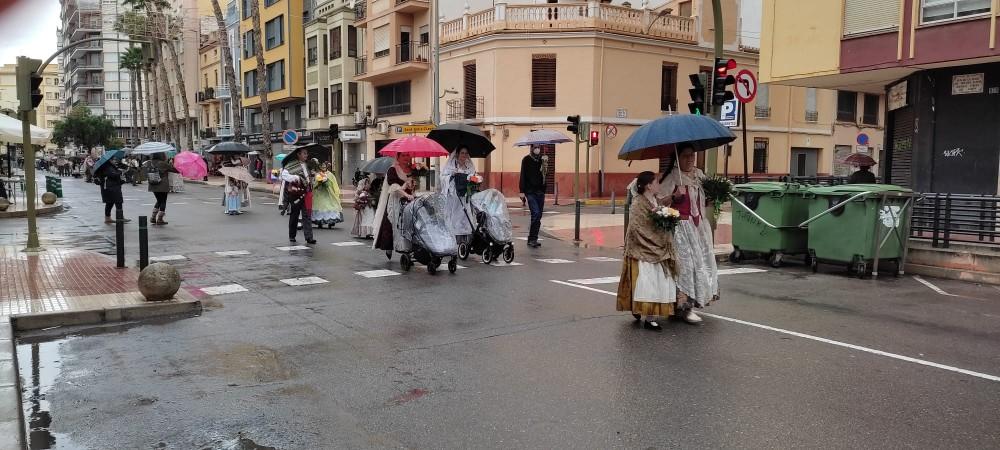 La Lledonera recibe las flores de los castellonenses en el último sábado de la Magdalena con lluvia