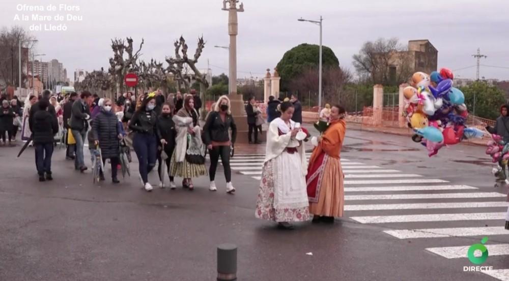 ¡Visca la Mare de Déu de Lledó!, con estos gritos de fervor, se ha realizado la primera parte de la Ofrenda de flores a la lledonera en una mañana lluviosa que todavía ha concedido un respiro para que la patrona de la ciudad pueda ser venerada en su basílica.