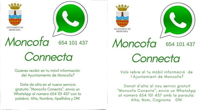 Conscients que el canal de comunicació estava destinat cap al telèfon mòbil, l'Ajuntament de Moncofa va posar en funcionament l'any 2016 'Moncofa Connecta', el conegut “ban“ via llista de difusió de l'aplicació més utilitzada del món, el 'Whatsapp'.