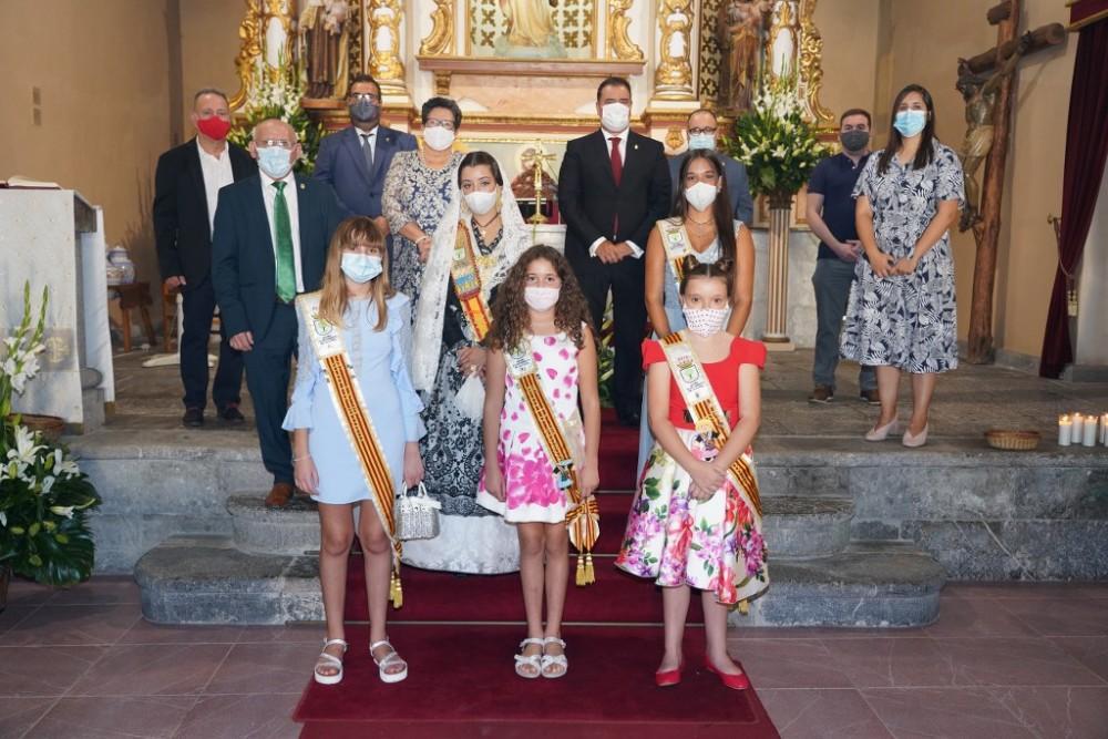 La misa se celebró con la presencia de la reina de las fiestas, Sara Gabaldá Cebrià, sus damas y niños y niñas que este año han celebrado su primera comunión. No faltó tampoco la corporación local encabezada por el alcalde, Ximo Llopis. En la misa se respetaron las distancias de seguridad y todos iban provistos de mascarillas.