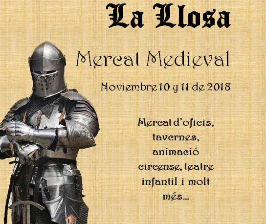 El Ayuntamiento de La Llosa y la Diputación de Castellón han organizado el fin de semana del 10 y 11 de noviembre un viaje al pasado con el mercado medieval del municipio. Así, vecinos y visitantes podrán disfrutar de diferentes actividades como teatro infantil, mercado de oficios, tabernas y animación circense.