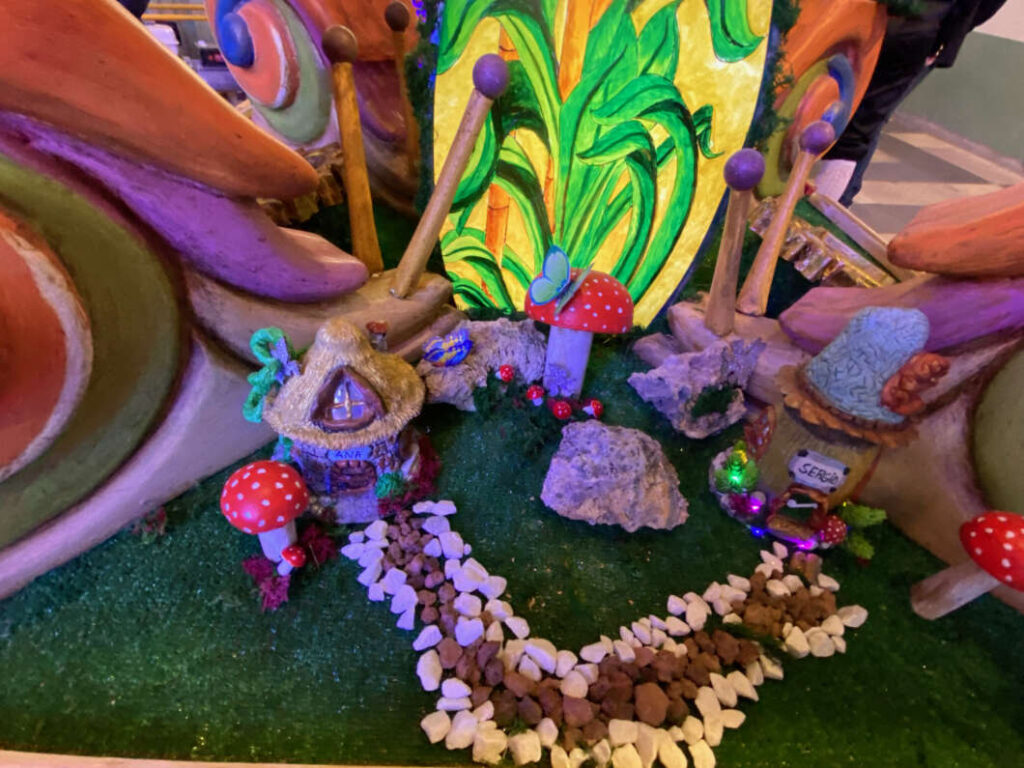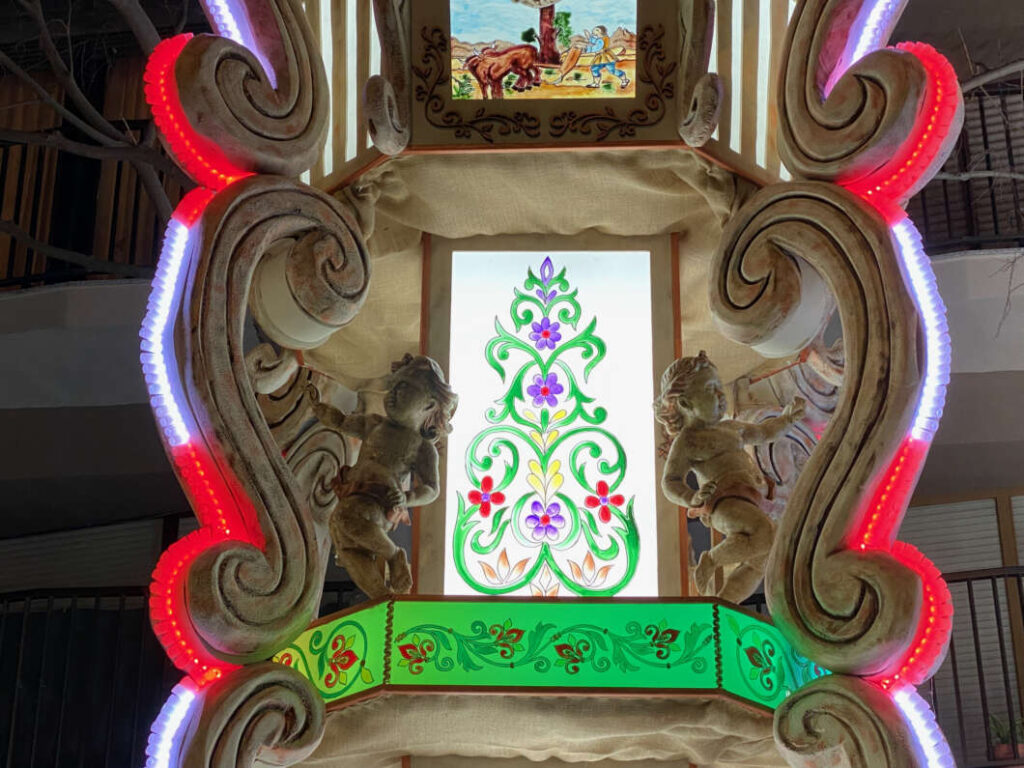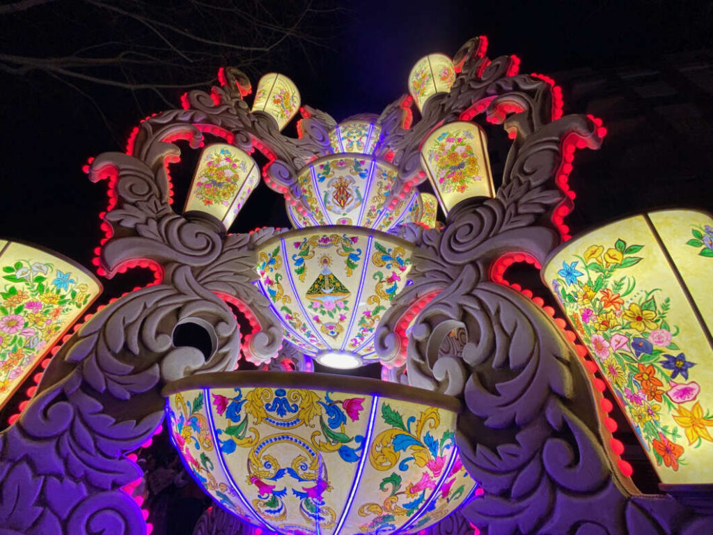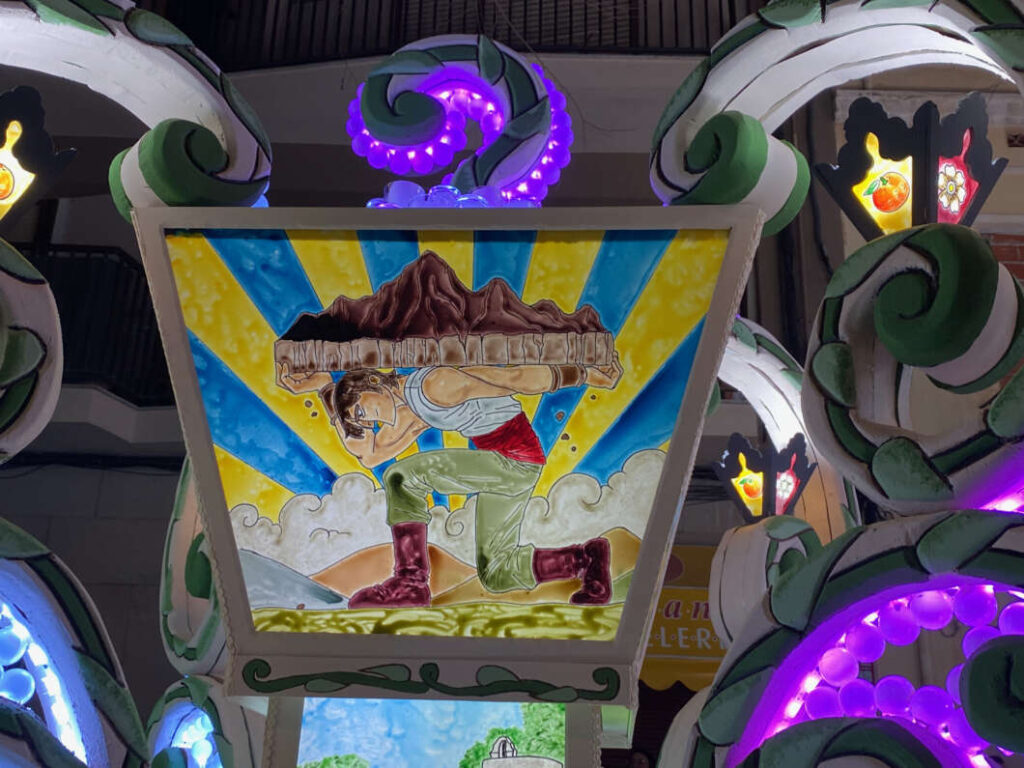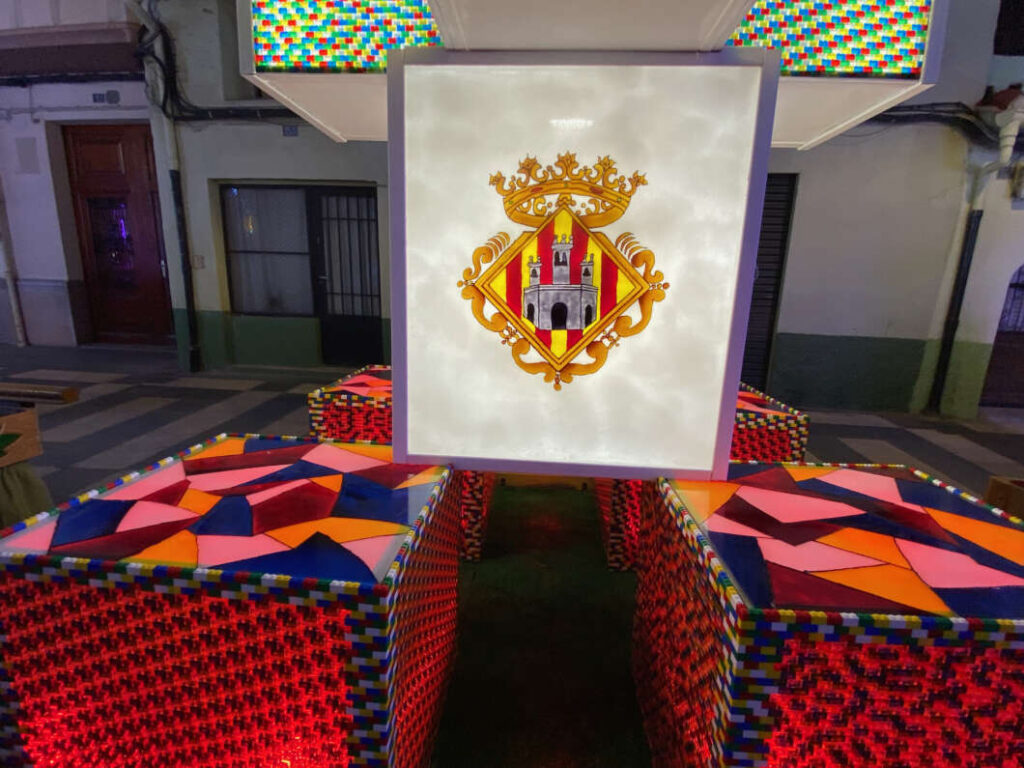Entre los monumentos de este año hay toda serie de apuestas. La mayoría son de corte clásico, pero también hay innovaciones muy curiosas. La más sorprendente la monumental de la 17, Tir de Colom. De día nol vale… mucho, porque está integrada por una composición de espejos y led…