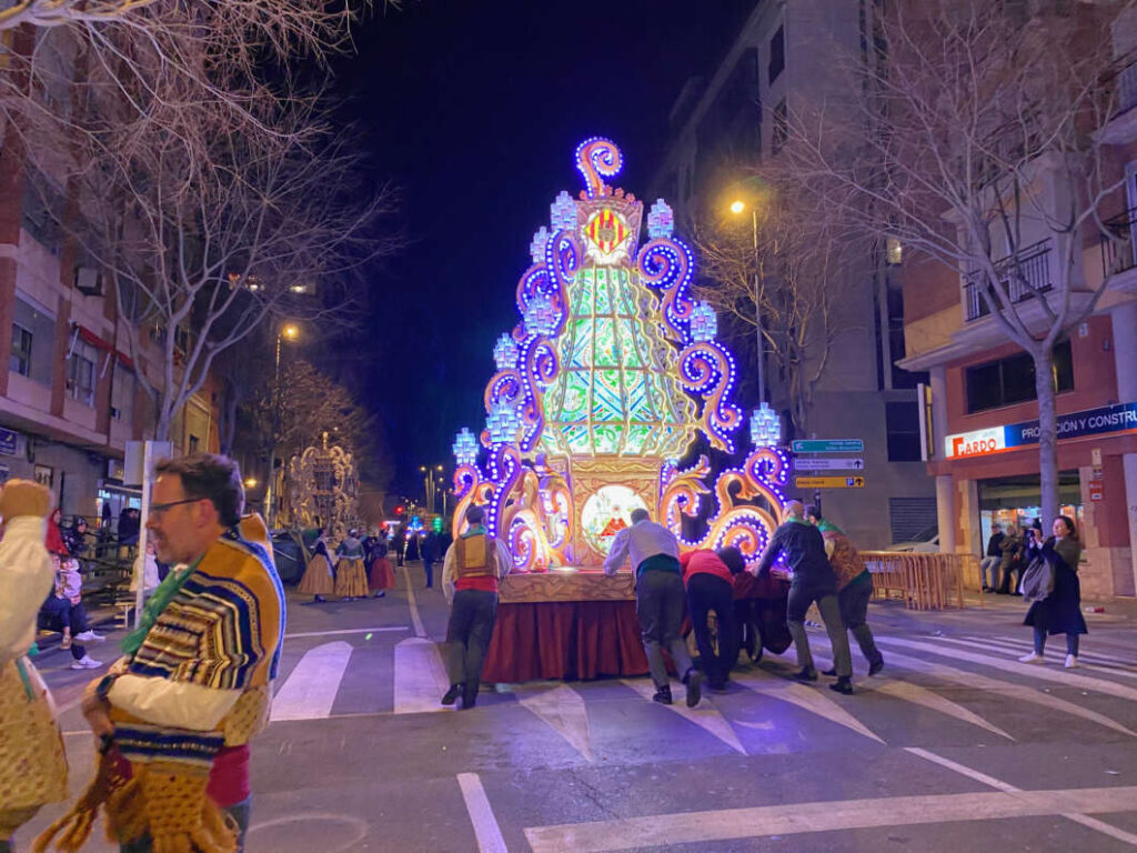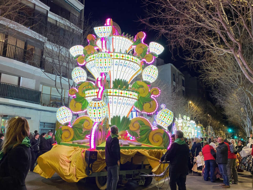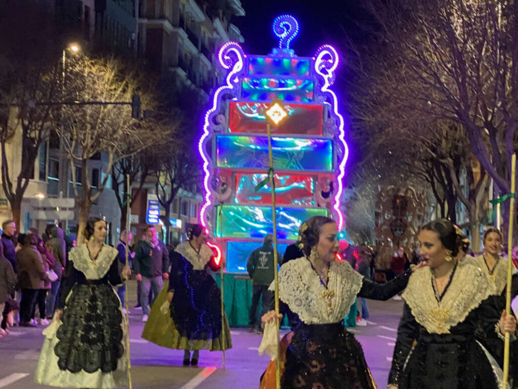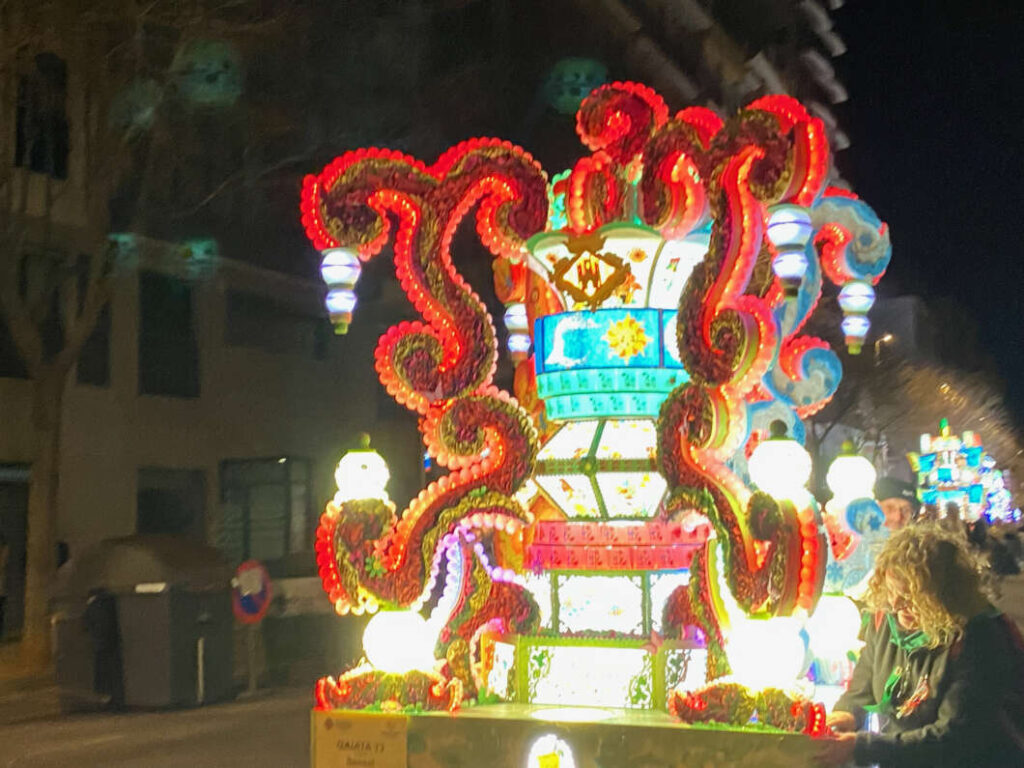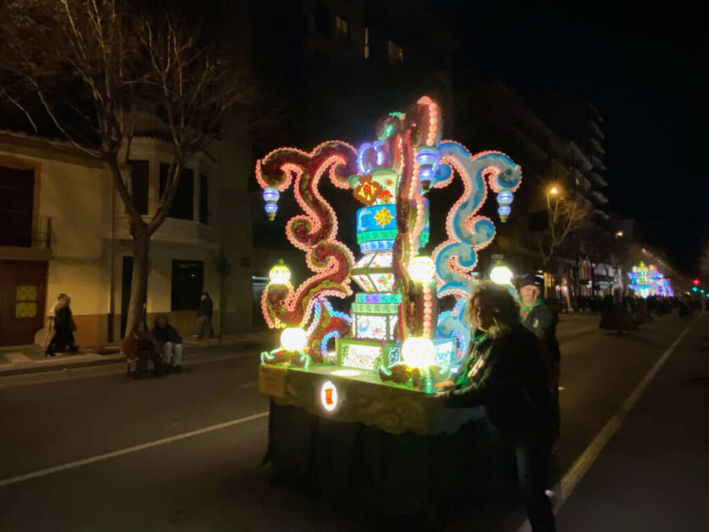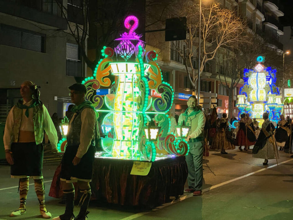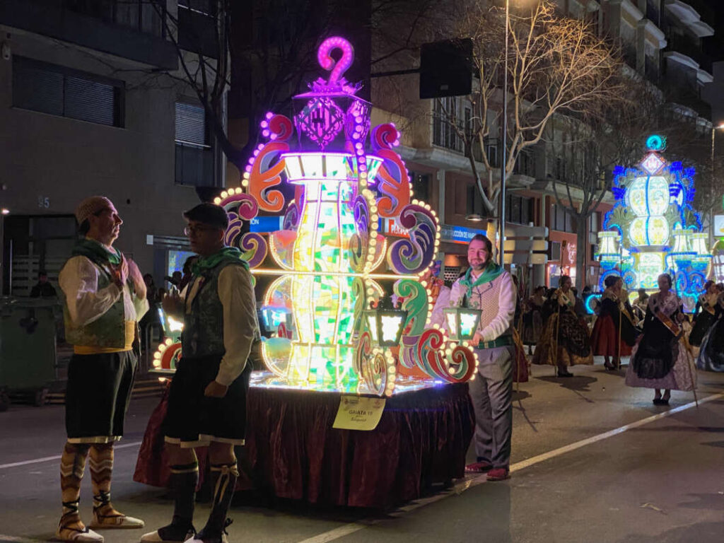 Completada la Tornà de la Romeria de les Canyas, y sin dilación comenzaba el Desfile de Gaiatas de los monumentos de luz de Castellón.